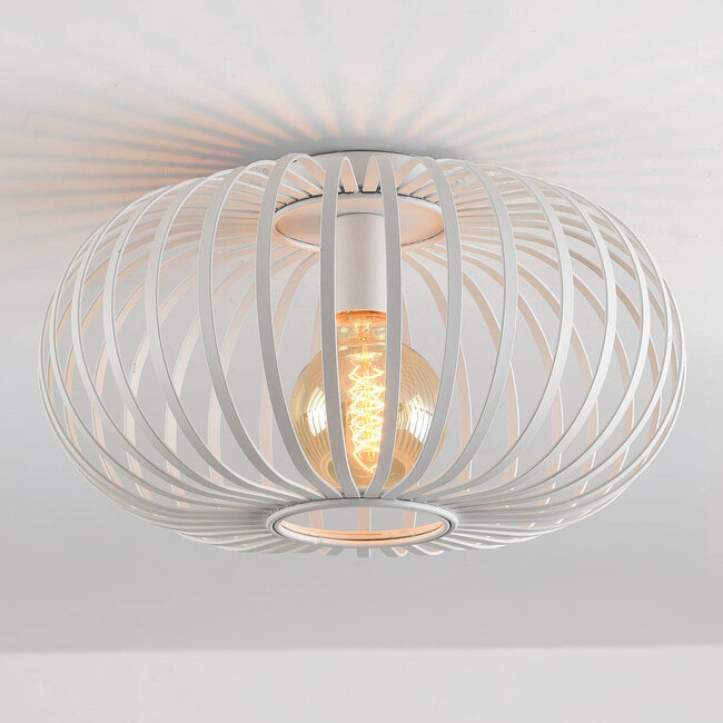 Fiore has a total diameter of 38 cm and is 22 cm high. The ceiling plate has a diameter of 10 cm. The lamp has one E27 lampholder and can handle a maximum of 60 watts (light bulbs not included). Depending on the light source chosen, the ceiling lamp is dimmable using an external dimmer switch (not included). Are you looking for a dimmer switch? Then take a look at our wall dimmer switches .