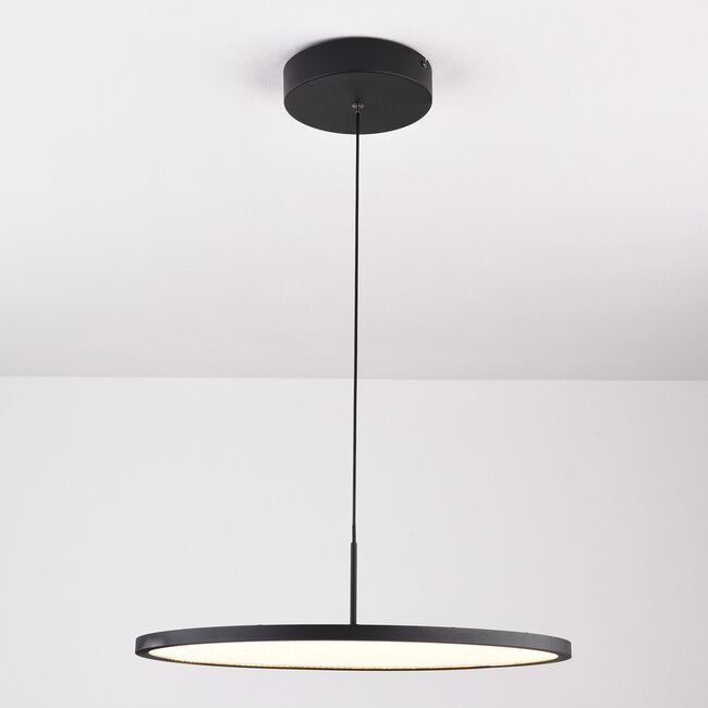 Taysa is a simple, functional pendant lamp that also looks elegant. The clean lines and round black metal frame give your interior an elegant look. Perfect for a modern interior, but also suitable as a timeless addition. The warm white light is beautifully diffused by the opal white diffuser. The pendant lamp also has a built-in 3-step dimmable function so that the lamp is dimmable with the wall switch. The large light surface provides even lighting, which is practical for above the dining table.