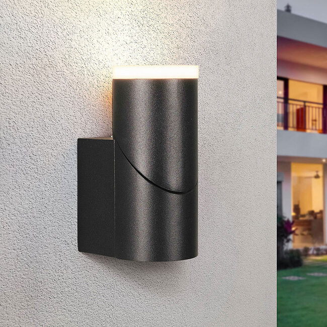 Some lamps attract attention with a design that looks simple but is above all very stylish. The Demy wall lamp is an outdoor lamp that does not immediately catch the eye, but you have to look at it a few times to appreciate it. The cylindrical lamp is a design that combines functionality and style. The black Aluminium fixture gives it a sleek look. The upper part of the lamp has a narrow rim that, like the top of the Demy, is made of transparent plastic. The integrated LED light source (8 watts) shines through this transparent window, providing 380 lumens of light output, making it an indispensable fixture next to your outside door. With an IP54 rating, the Demy is also water and dust resistant, making the wall lamp suitable for outdoor use.