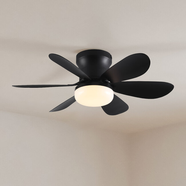 Combine powerful cooling and atmospheric lighting in one stylish design. This black ceiling fan (Ø53 x 16 cm) is equipped with an energy-efficient 12W motor, three speeds and dimmable CCT lighting (3000–6500K). The CCT control mode (Correlated Colour Temperature control mode) allows you to switch between warm white (3000K) and cool, white light (6500K), depending on the desired atmosphere or functionality. Thanks to dual rotation, memory function and remote control, you can enjoy ultimate comfort and effortless control. Perfect for cooling and mood lighting in one!