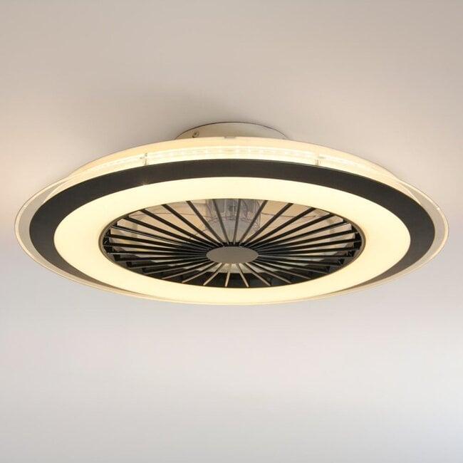 This multifunctional ceiling fan is a 2-in-1 product: Meva provides a cooling or warming room and can also be used as a ceiling light. Thanks to its convenient summer/winter mode, this fan can be used all year round. The ceiling light is subtle, but the decorative outer ring makes it a true addition to your interior.