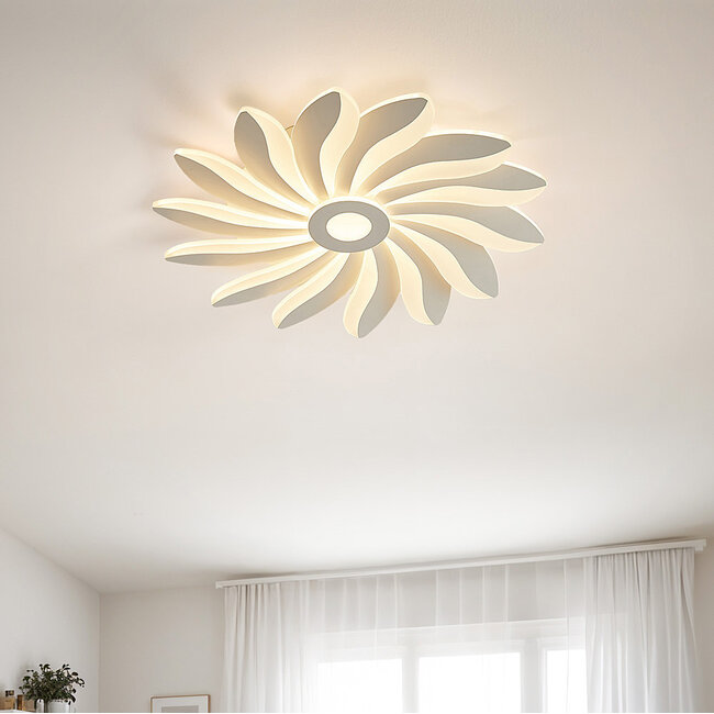 Are you looking for a ceiling lamp with a playful flower design? Look no further. Anchusa is a modern ceiling lamp in the shape of a flower. The shape causes shadows to dance across the ceiling. Give Anchusa a place in your living room or in the children's room lighting. It emits soft light and the wall switch allows you to easily switch between colour temperatures: 3000K (warm white), 4000K (neutral white) or 6000K (cool white). This allows you to create the desired atmosphere yourself.