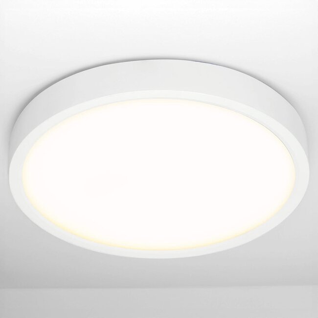 Yves has a diameter of 30 cm and a height of 3.6 cm. The integrated LEDs have a wattage of 20 watts and a warm white light colour of 3000K. The maximum light output is 1000 lumens, but thanks to the 3-step dimming function, you can set the light output to three different levels.