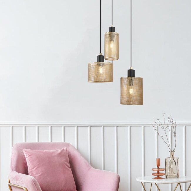 Hanging lamps are among the most sought-after luminaires in Germany and are a real eye-catcher in any room. Are you looking for atmosphere above the dining table, in the hallway, in the bedroom or in the living room? Then this lamp is very suitable for your situation. With its chic design and golden details, this lamp immediately creates a warm atmosphere in your home. The translucent lamp also provides a playful lighting effect. This lamp is supplied with light sources. The desired light sources can be ordered separately. This has the advantage that you can set up a lamp of your choice.