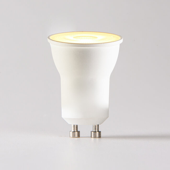 The PAR11 GU10 LED bulb with a wattage of 3.2 watts is an energy-efficient replacement for a traditional halogen bulb of approximately 35 watts. This compact bulb with GU10 lampholder produces 300 lumens and a warm light colour of 2700K, which provides pleasant and atmospheric lighting in your home. Thanks to the dimmable function, you can easily adjust the light intensity.