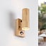 Are you looking for a beautifully designed wall lamp to illuminate your outdoor space? With a wood effect and two lampholders, Martina is the lamp for you! The round shapes combined with the wood create a charming yet robust look. The lamps are dimmable, allowing you to always create the desired atmosphere. This outdoor lamp also has a sensor, so it only lights up when necessary, providing extra safety. Martina fits perfectly with any modern interior or outdoor space and is easy to attach to a wall or fence.
