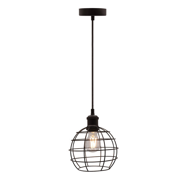 This lamp with E27 lampholder is suitable for bulbs with a maximum of 25 watts. The Hugo pendant light has an IP20 rating and therefore falls under the indoor lighting category. The frame has a height of 14.5cm, a diameter of 18cm and the cable has a length of 2 metres.