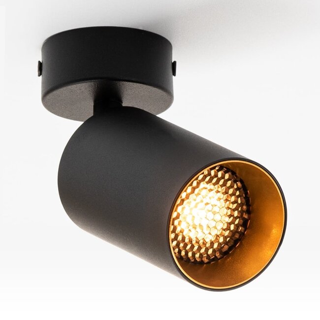The atmospheric combination of a black spot with a golden interior is what makes this Nala the suitable ceiling spot in every interior. The gold interior provides a warm and cozy light. Because the spot is tiltable, you can decide where the Nala shines her light. The fixture is finished in a sleek matte black color. This gives Nala the modern look you are looking for.