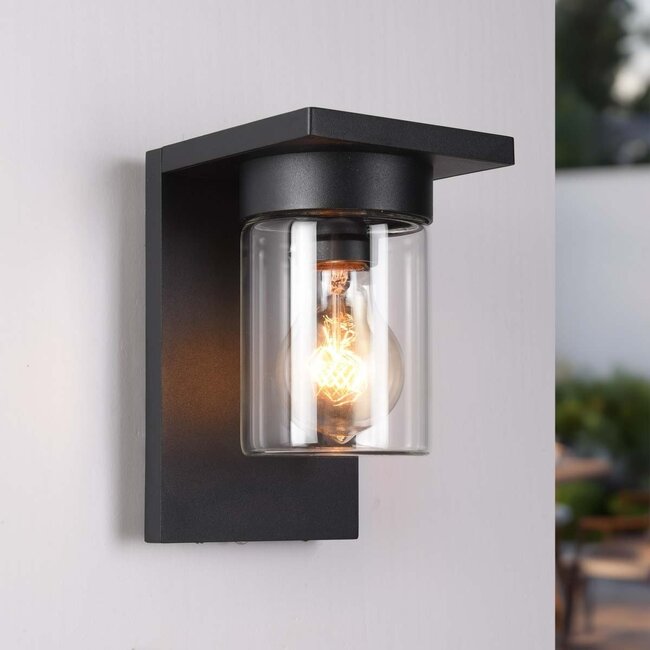 The Aniello wall lamp is a sleekly designed outdoor lamp in black metal, equipped with an integrated lux sensor (twilight sensor). This twilight sensor automatically switches on the light at dusk, providing comfort and energy savings. Suitable for the front door, garden path or terrace.