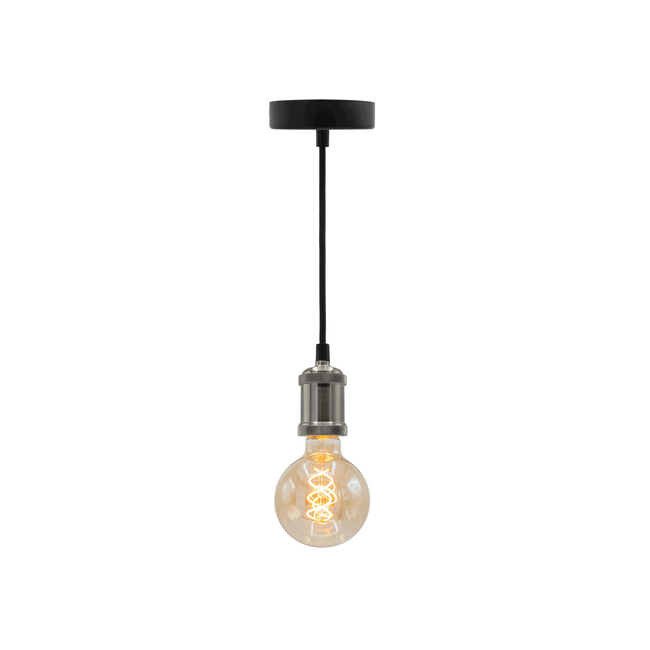 With this original metal pendant, you can create your own pendant lamp. Thanks to the lustrous silver coating, the pendant fixture creates a modern ambiance. You can combine the pendant fixture with a range of different bulbs to create a unique pendant lamp that suits your style and interior. By combining the cord pendant with our LED bulbs, you immediately create a complete set. For a special lighting effect, we recommend our XL filament bulbs. Thanks to the round metal fitting, this pendant fixture has a minimalist yet striking appearance. This pendant fixture places your favourite bulb in its best light.
