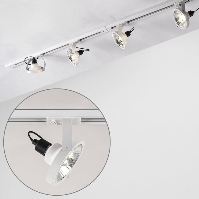The Beam track spotlight is specially designed to accommodate AR111 GU10 light bulbs of up to 15 watts. AR111 LED spotlights are suitable for situations where you want to highlight something specific. In business settings, think of the presentation of clothing or shoes in a shop, and in restaurants, the food on the table. In a private setting, this lamp is suitable when you have higher ceilings in your home. Our single-phase Track lighting is a system consisting of three components. Are you looking for a dimmer? Then take a look at our wall dimmer switches .
