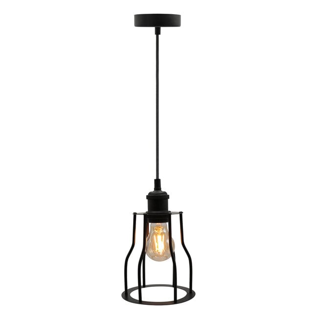 This lamp with an E27 lampholder is suitable for bulbs with a maximum of 25 watts. The Diego pendant lamp has an IP20 rating and therefore falls under the category of indoor lighting. The frame has a height of 16.5 cm, a diameter of 15 cm and the cord has a length of 2 metres.